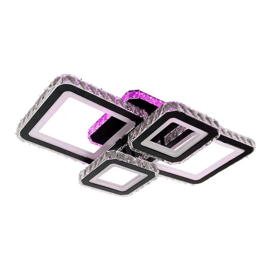 Lustre LED avec télécommande et cristal BLAKELY RGB 166W, 3 Carrés, Lumière Froid/Chaud/Neutre, Dimmable, Blanc