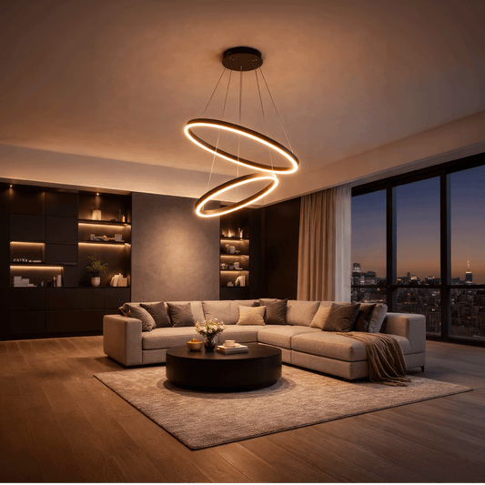 Lors du choix d'un lustre LED suspendu, tenez compte des proportions de la pièce et du style du mobilier. Pour les grands espaces, les modèles d'un diamètre supérieur à 60 cm offrent un équilibre visuel, tandis que dans les pièces plus petites, des pièces compactes au design minimaliste conviennent.
