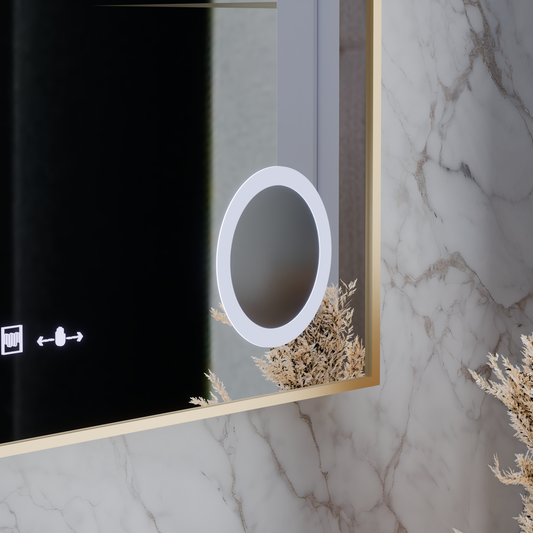 En rupture de stockPrix habituel€155,95Prix promotionnel €47,95ÉpuiséMiroir LED rectangulaire, 60x60 cm, Souverain MotionGlow Marcello, système anti-buée, horloge et thermomètre, loupe cosmétique, variable