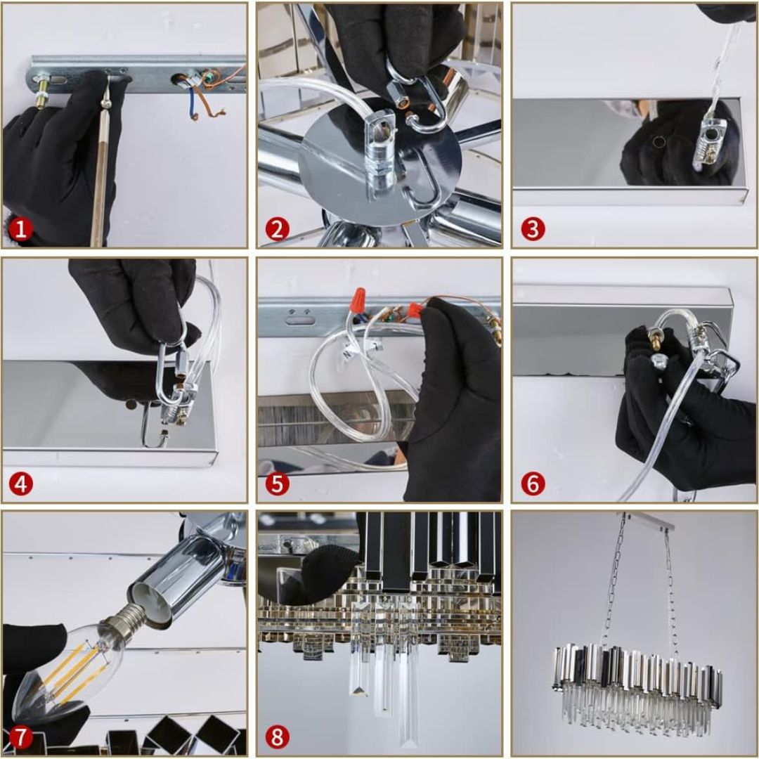 - Design élégant et matériaux haut de gamme : Avec une finition argenté et une structure robuste de métal et cristal, ce lustre suspendu il s'impose par sa présence sophistiquée. Hauteur réglable permet une personnalisation parfaite en fonction de l'espace, ayant une hauteur de 30 cm, longueur de 80 cm et la largeur de 35 cm.