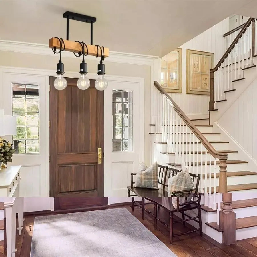 Lustre Ema, 3*E27, marron, métal et bois
