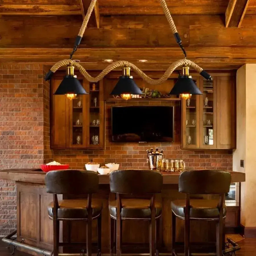 Lustre en corde, 3*E27, marron, métal et ficelle
