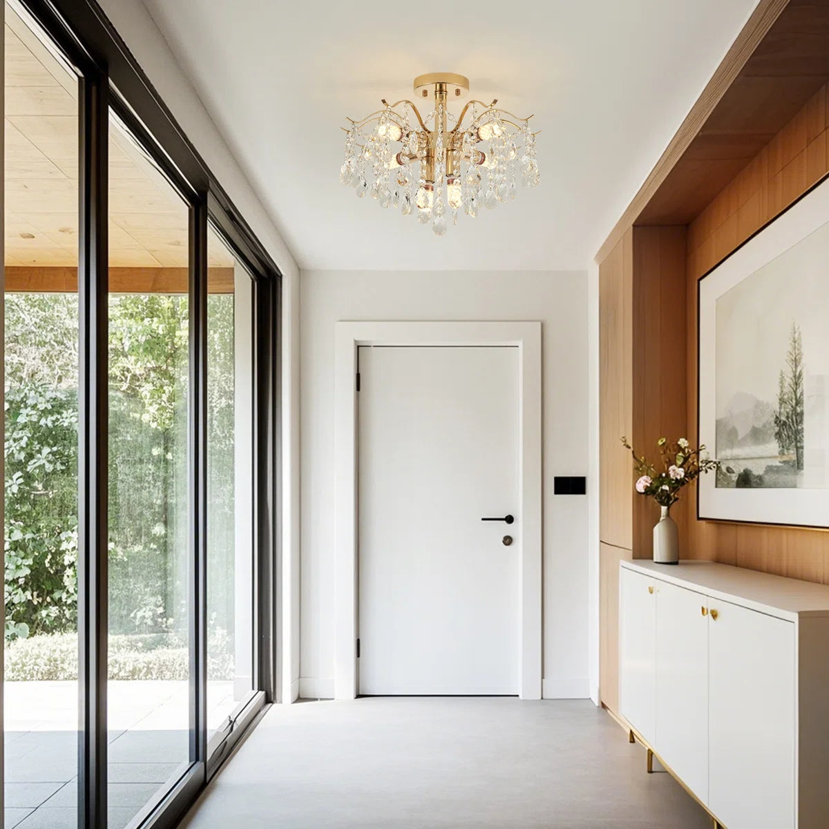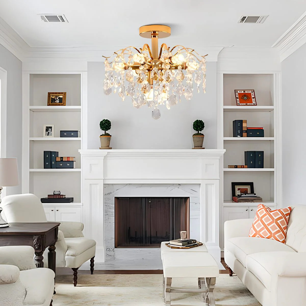 Lustre en cristal Fiamma, 6x E14, diamètre 45 cm, doré, métal et cristal