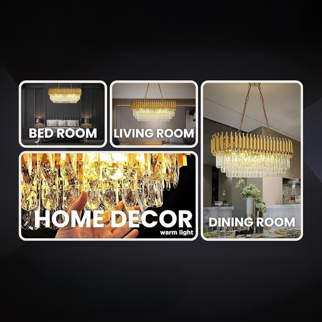 - Design élégant et matériaux précieux : Avec une finition or brillant et une structure robuste de métal et cristal, ce lustre suspendu il s'impose par sa présence sophistiquée. Hauteur réglable permet une personnalisation parfaite en fonction de l'espace.