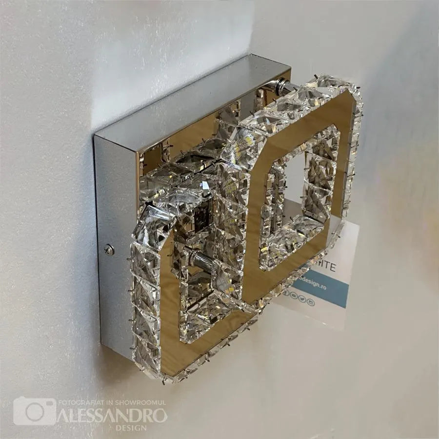• Design moderne et élégant : Structure argentée avec éléments en cristal brillant.