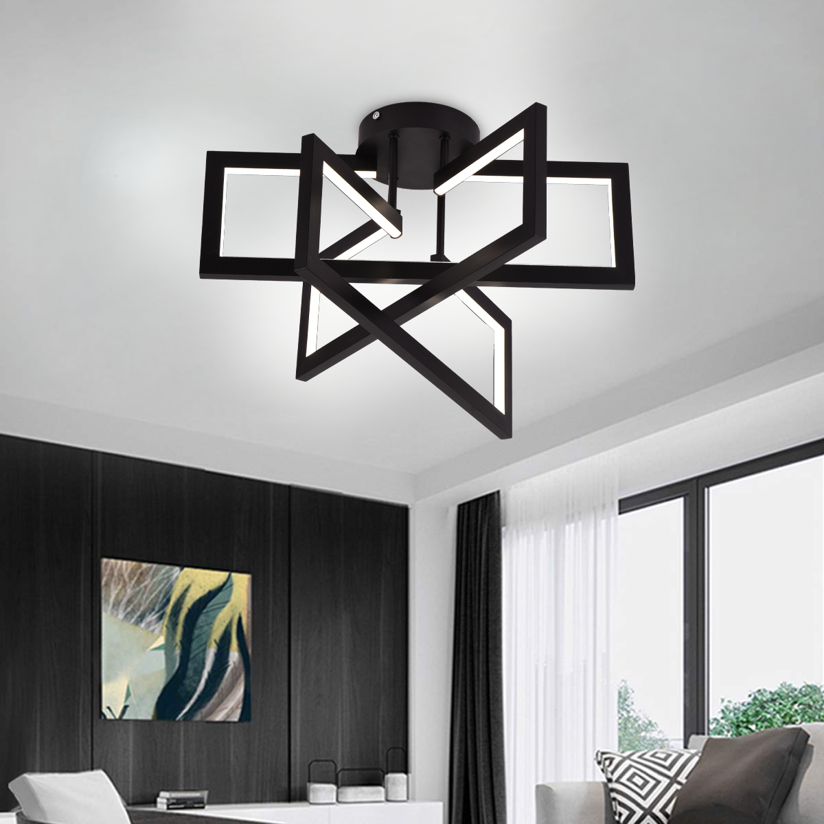 Lustre LED avec télécommande 72W, 3 éléments, Lumière froide/chaude/neutre, Dimmable, Noir, LT750/3BK