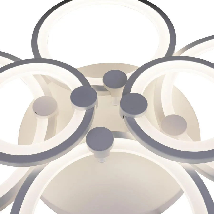 Lustre LED avec télécommande ALANI 168W, 6 Cercles, Lumière Froide/Chaude/Neutre, Dimmable, Blanc