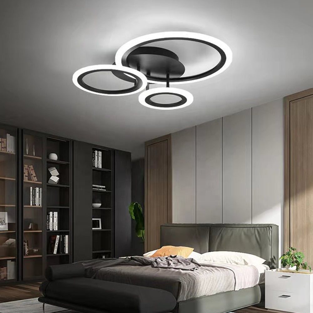 Lustre LED avec télécommande BETTY 41W, 3 Cercles, Lumière Froide/Chaude/Neutre, Dimmable, Noir