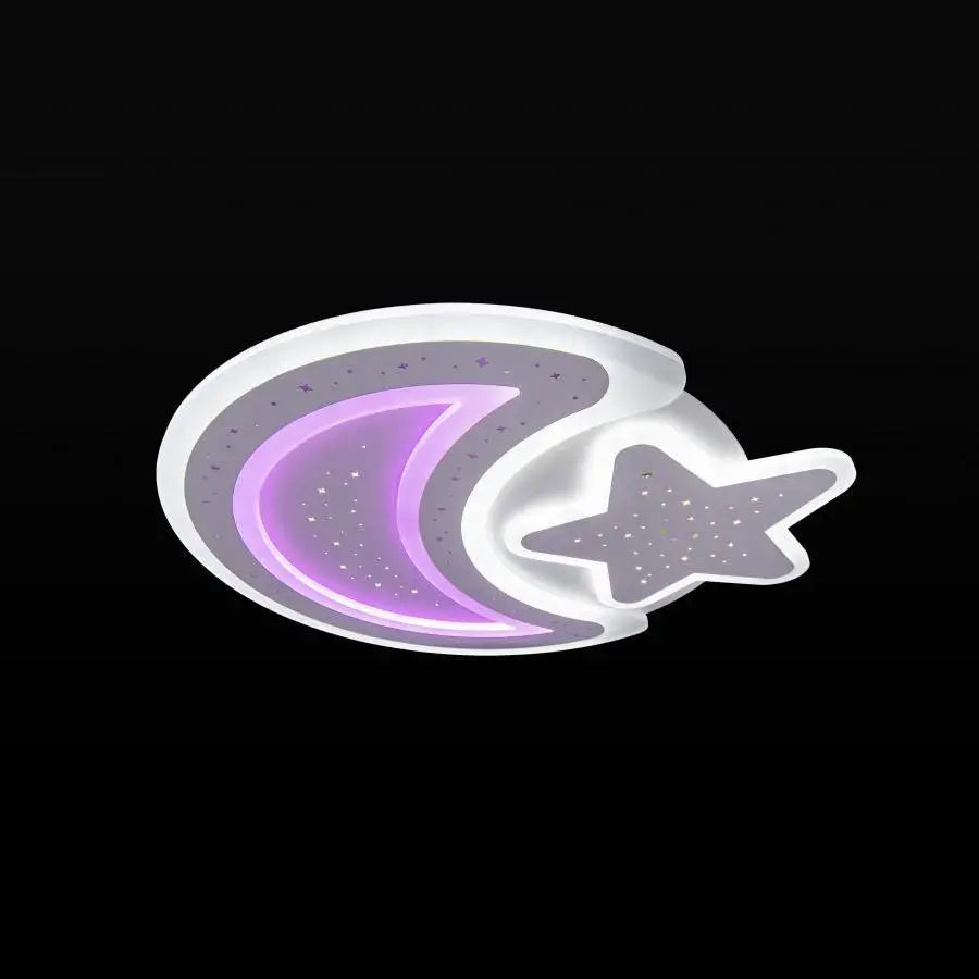 Lustre LED avec télécommande CORALIA 81W, Lune et Étoile, Lumière Froide/Chaude/Neutre Dimmable Blanc