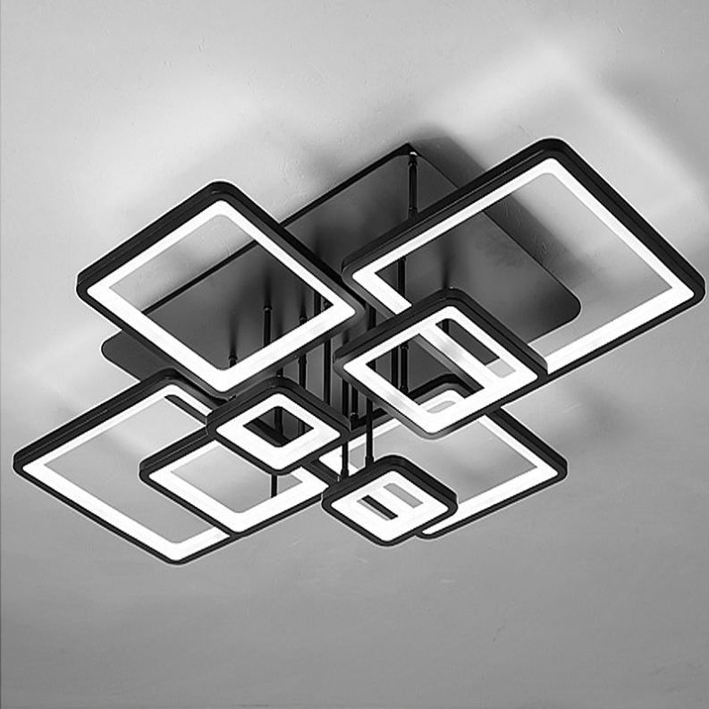 Lustre LED avec télécommande ELLA 186W, 8 carrés, Lumière Froide/Chaude/Neutre, Dimmable, Noir