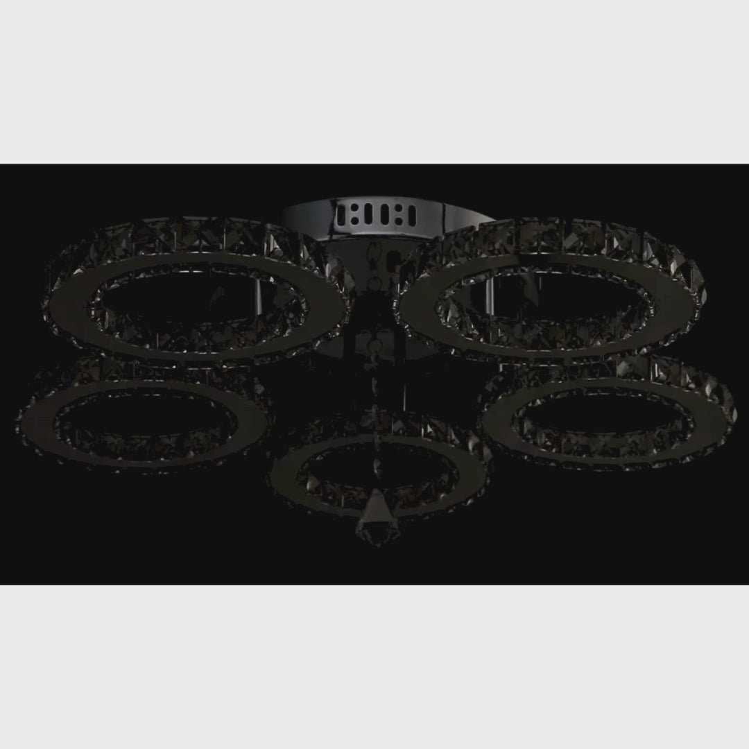 Lustre LED avec télécommande et cristal ALANUBIS 80W, 5 Cercles, Lumière Froide/Chaude/Neutre, Dimmable, Chrome Brillant