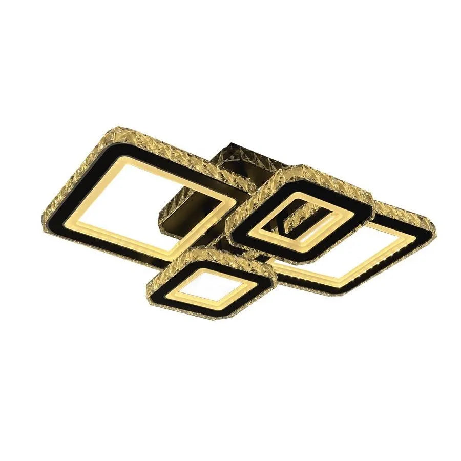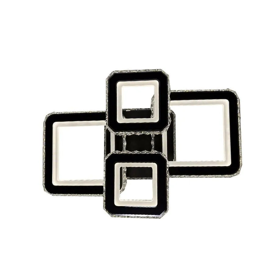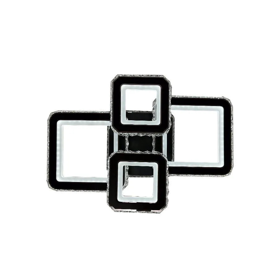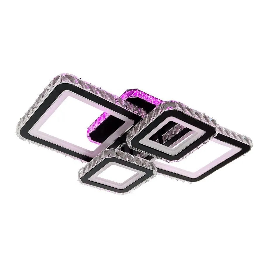 Lustre LED avec télécommande et cristal BLAKELY RGB 154W, 4 Carrés, Lumière Froid/Chaud/Neutre, Dimmable, Noir