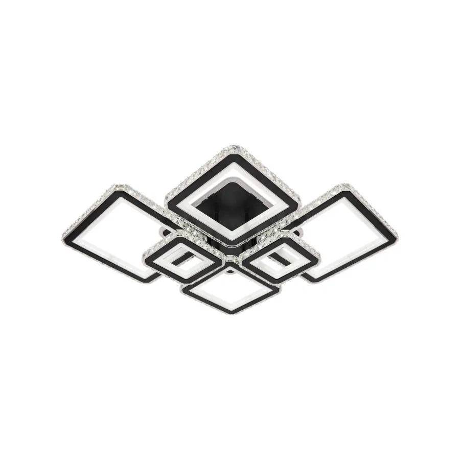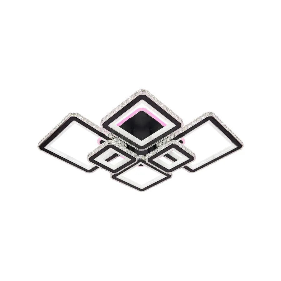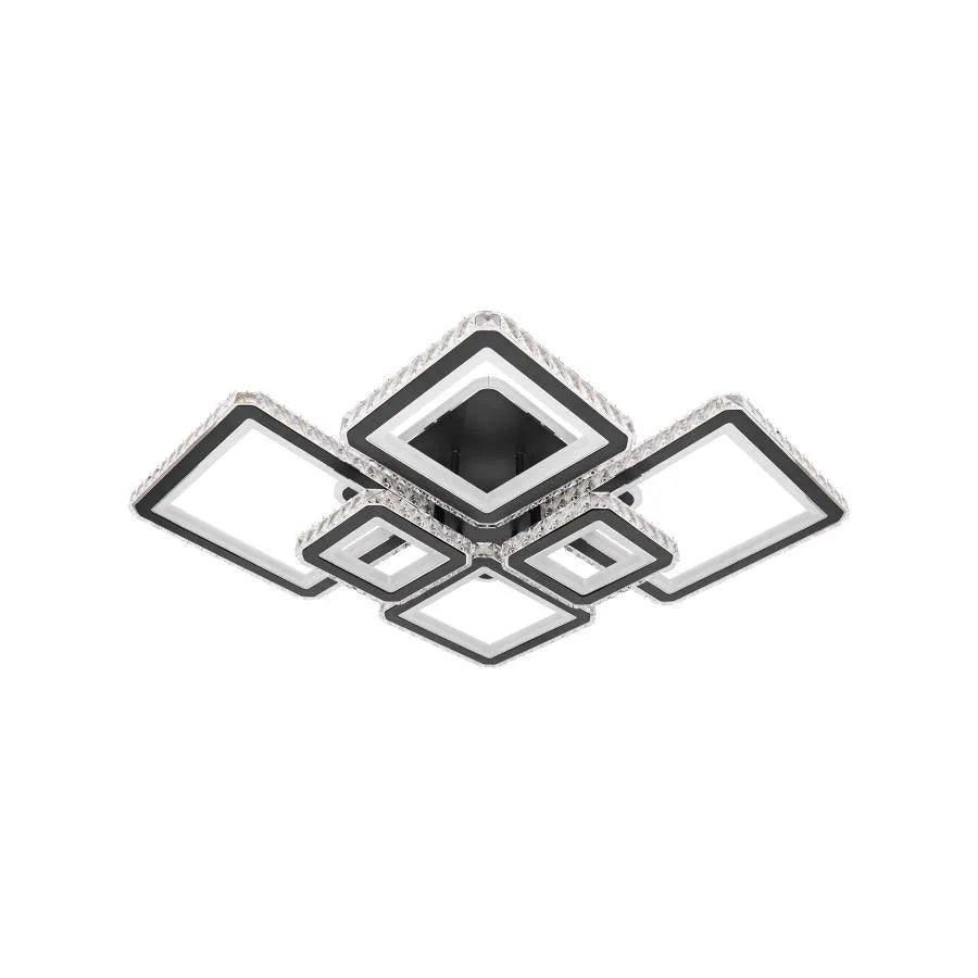 Lustre LED avec télécommande et cristal QUADRIS RGB 177W, 6 Carrés, Lumière Froid/Chaude/Neutre 3000K/4000K/6000K, Dimmable, Noir, Métal et Cristal