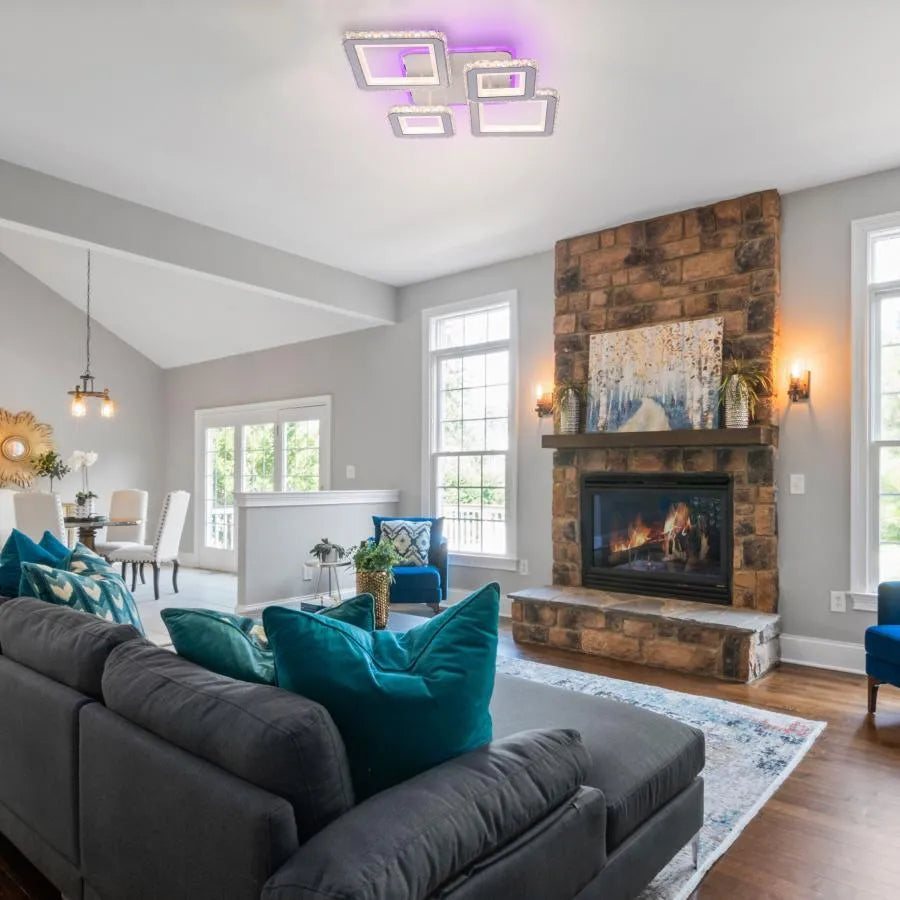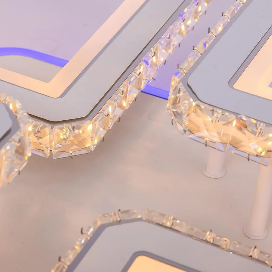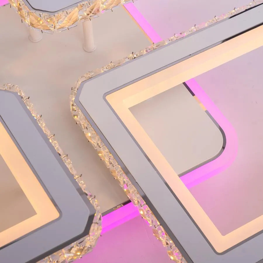 Lustre LED avec télécommande et cristal QUADRIS RGB, 96W, 4 Carrés, Lumière Froid/Chaud/Neutre, Dimmable, Blanc