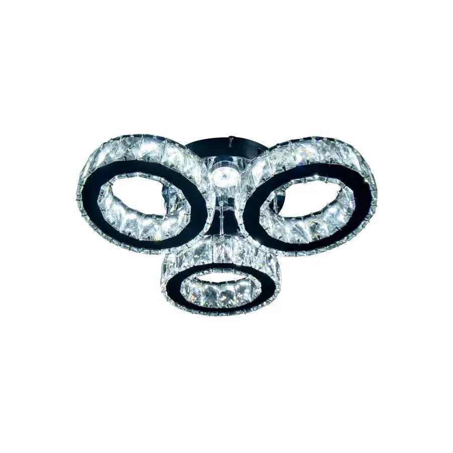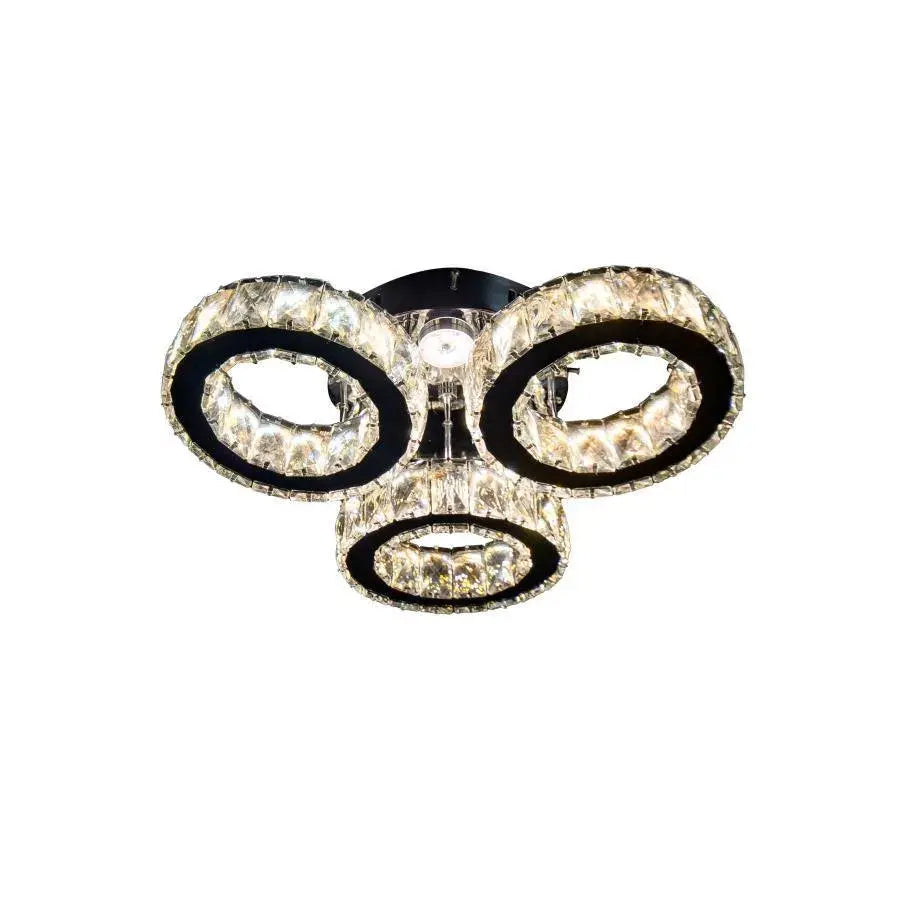 Lustre LED avec télécommande et cristal TIMOTEI 30W, 3 Cercles, Lumière Froid/Chaud/Neutre, Gradable, Chrome Noir Brillant