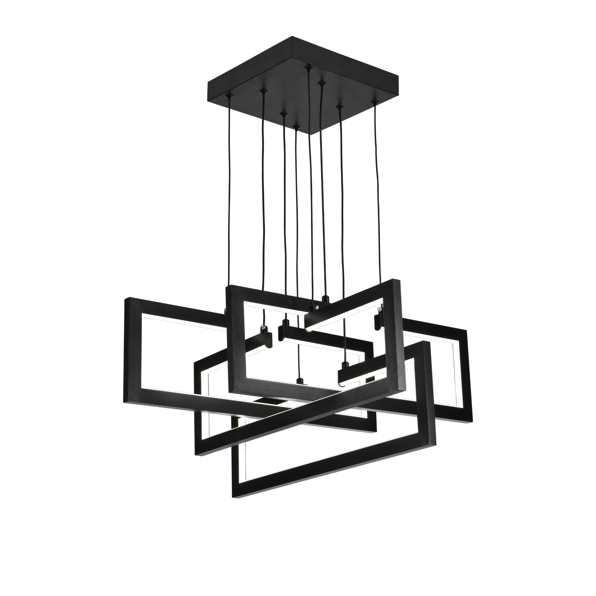 Lustre LED avec télécommande, Suspendu 96W, 4 Éléments, Lumière Froid/Chaud/Neutre, Dimmable, Hauteur réglable, Noir