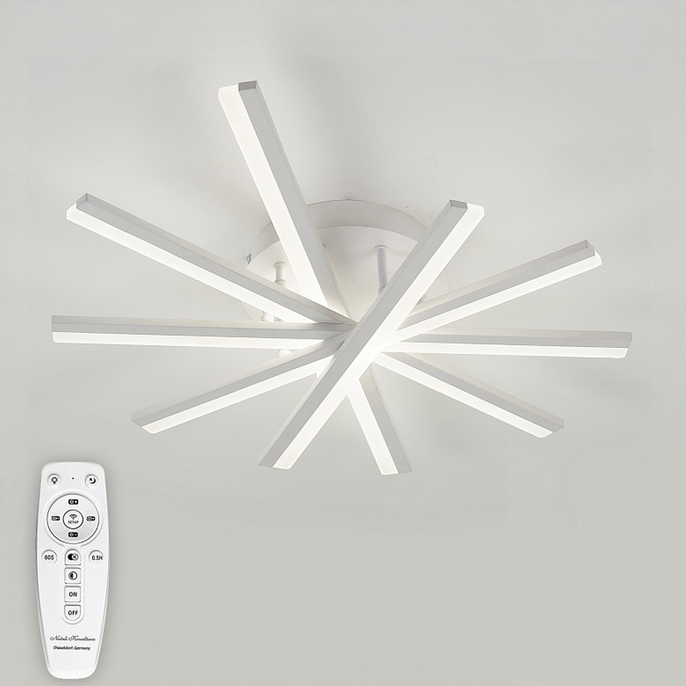 Ce lustre LED moderne, avec sa forme géométrique dynamique et sa finition blanc mat, apporte une touche architecturale élégante à tout intérieur contemporain. Conçu pour la fonctionnalité et la flexibilité, il est équipé d'une télécommande qui permet de régler la température de couleur et l'intensité lumineuse, s'adaptant parfaitement à tout moment de la journée.