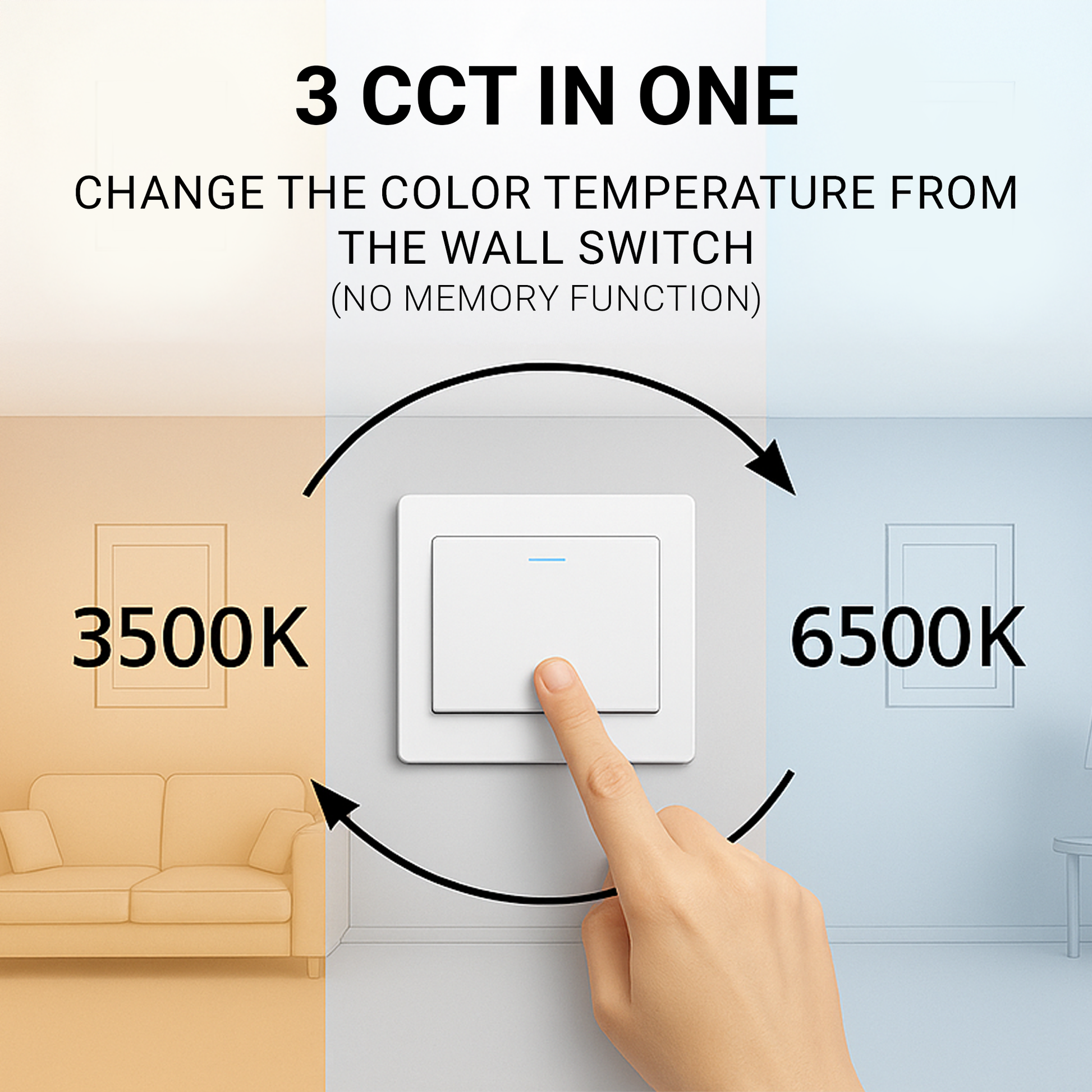 ⚠️ ATTENTION ! : Le réglage d'une certaine température de couleur ne peut être effectué que si les lustres sont éteints et allumés depuis la télécommande. Dans les deux lustres avec et sans télécommande, des pressions successives sur l'interrupteur changent le type de lumière.