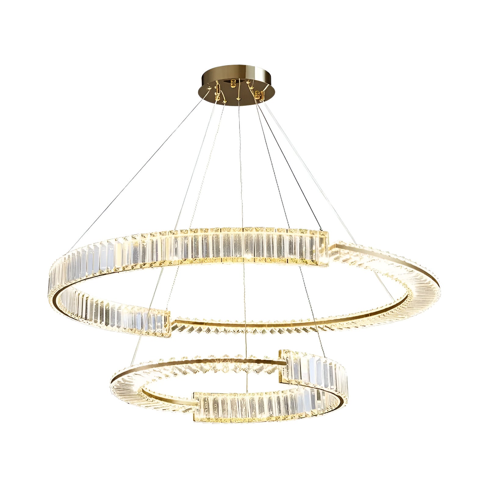Lustre LED suspendu avec télécommande et cristal PRISM REGAL 120W, 2 Cercles, Lumière Froid/Chaud/Neutre, Dimmable, Doré, Hauteur Réglable
