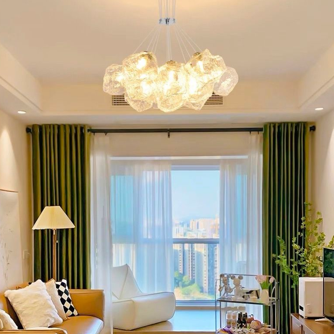 Ceci lustre avec ampoule est équipé de 13 prises E27, étant idéal pour les grandes pièces, telles que les salons ou les chambres spacieuses. Le design suspendu avec des globes en verre transparent crée un effet visuel aéré et assure une répartition uniforme de la lumière.