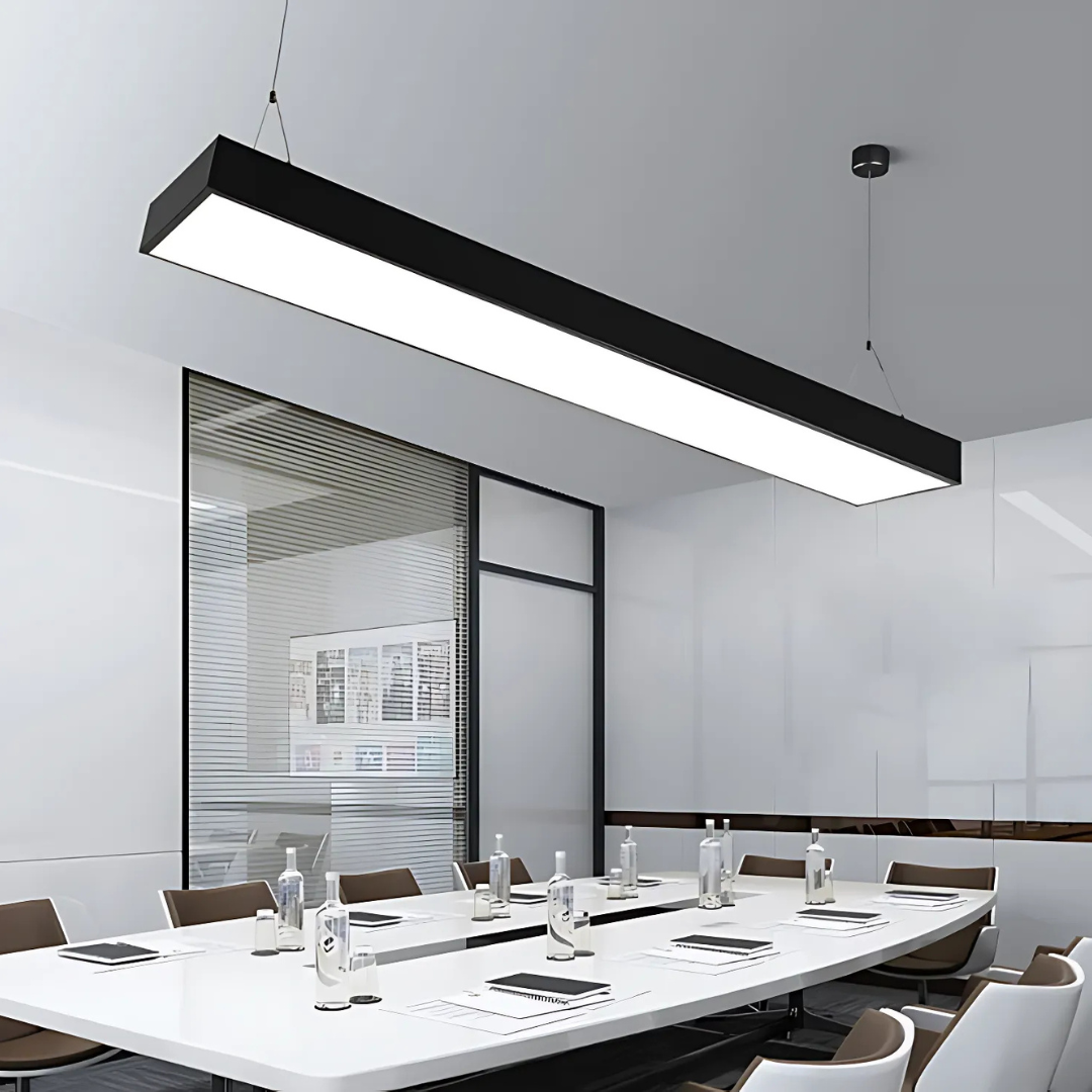 - Design élégant et suspendu : Avec un forme linéaire et une finition noir sophistiqué, ce lustre est spécialement conçu pour être suspendu, offrant une présence visuelle discrète mais percutante dans n'importe quelle pièce moderne.