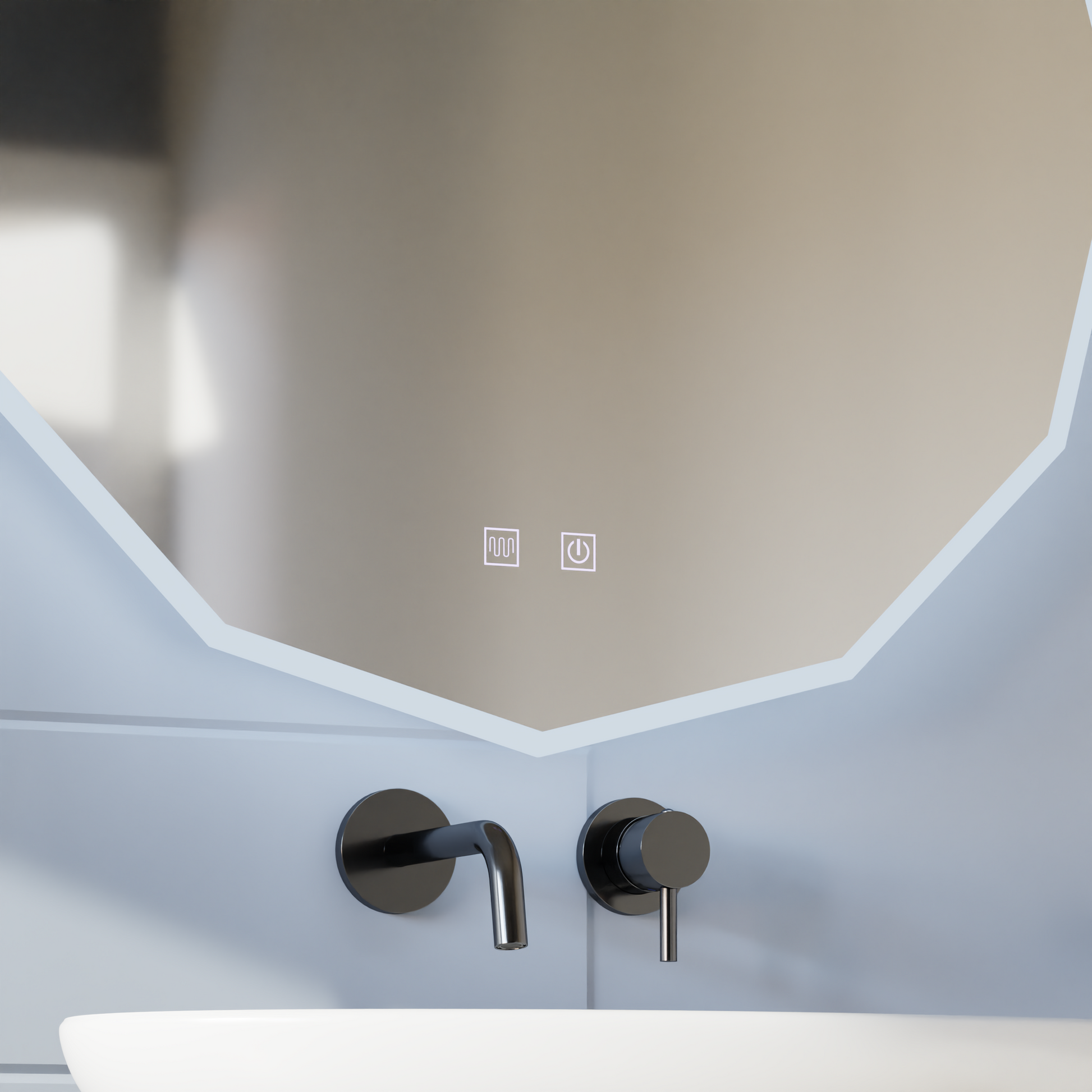 La commande « Touch » indique que l'allumage/extinction de la lumière et éventuellement d'autres fonctions (telles que l'intensité lumineuse, si variable) sont obtenus en touchant une zone spécifique du miroir.