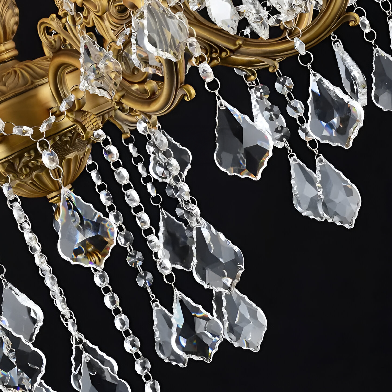 en stockPrix habituel€66,95Prix promotionnel €42,95PromotionLustre en cristal VERSAILLES Magno 8xE27, diamètre 60cm, doré brillant et noir, hauteur réglable